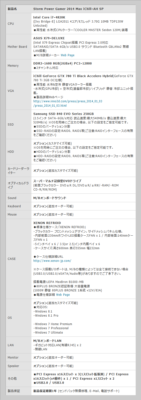 簡易液冷ユニット付きOC版GTX 780 Ti搭載のゲーマー向けPCがStormから