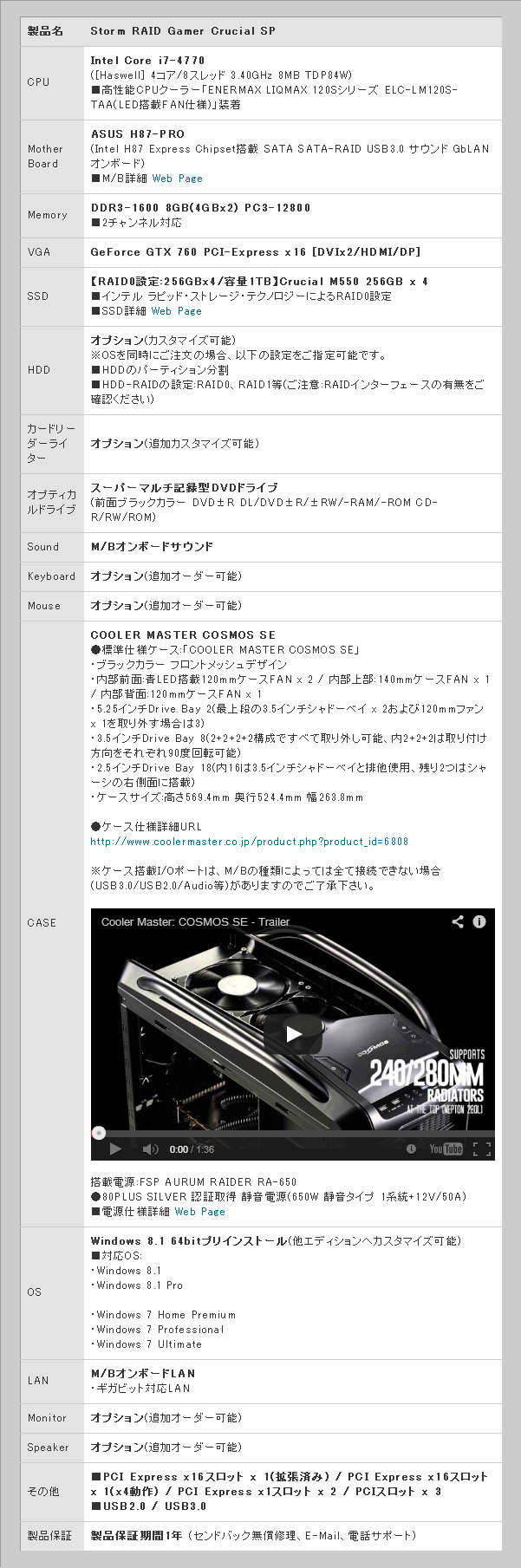 Crucial製SSD×4をRAID 0構成で搭載するゲーマー向けPCがストームから