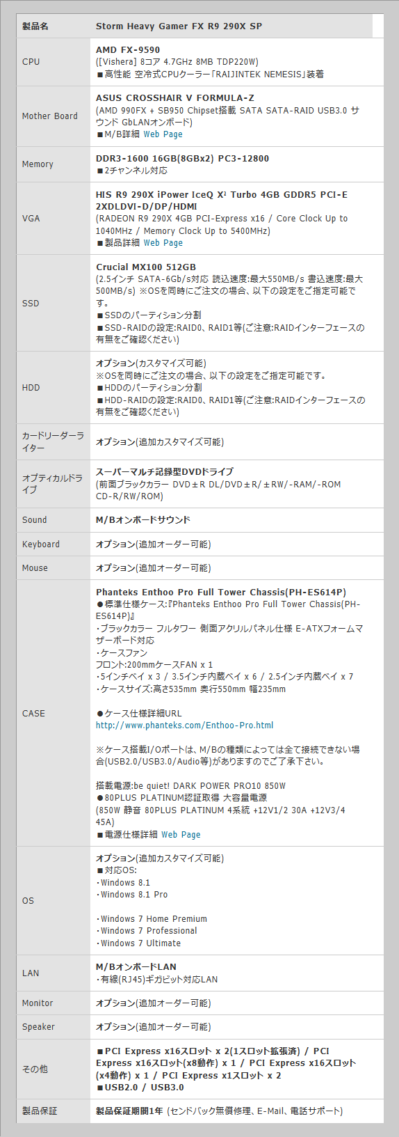 Storm,OC版R9 290XとFX-9590を搭載するAMDづくしなゲーマー向けPC