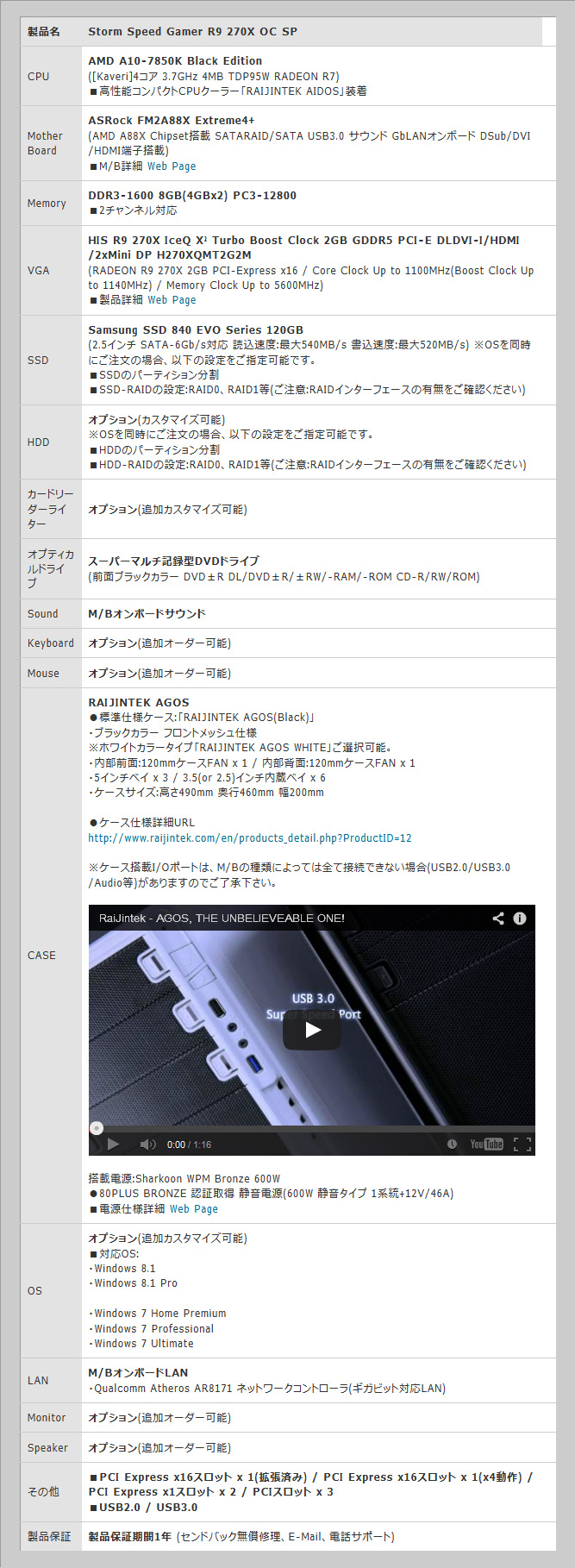 Storm,A10-7850KとOC仕様のR9 270X採用で約10万円からのゲームPC
