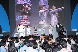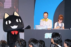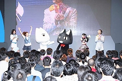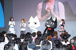 そして一通りの紹介を終えたところで,コラボレーション要素に関して緊急ニュースが飛び込んできた。なんと,本作に「どこでもいっしょ」シリーズの“トロ”と“クロ”が登場するというのだ。それから特別ゲストとして,トロとクロがステージに現われ,能登さんと小倉さんが「かわいい!」と大はしゃぎしていた。