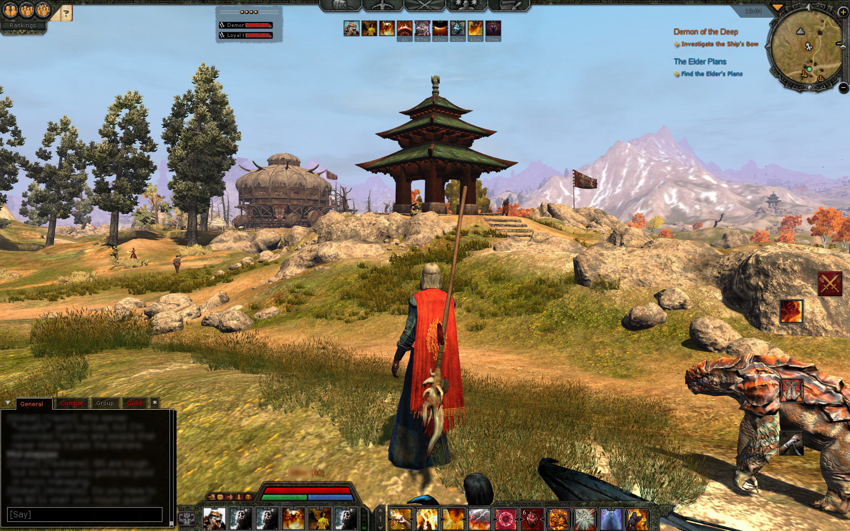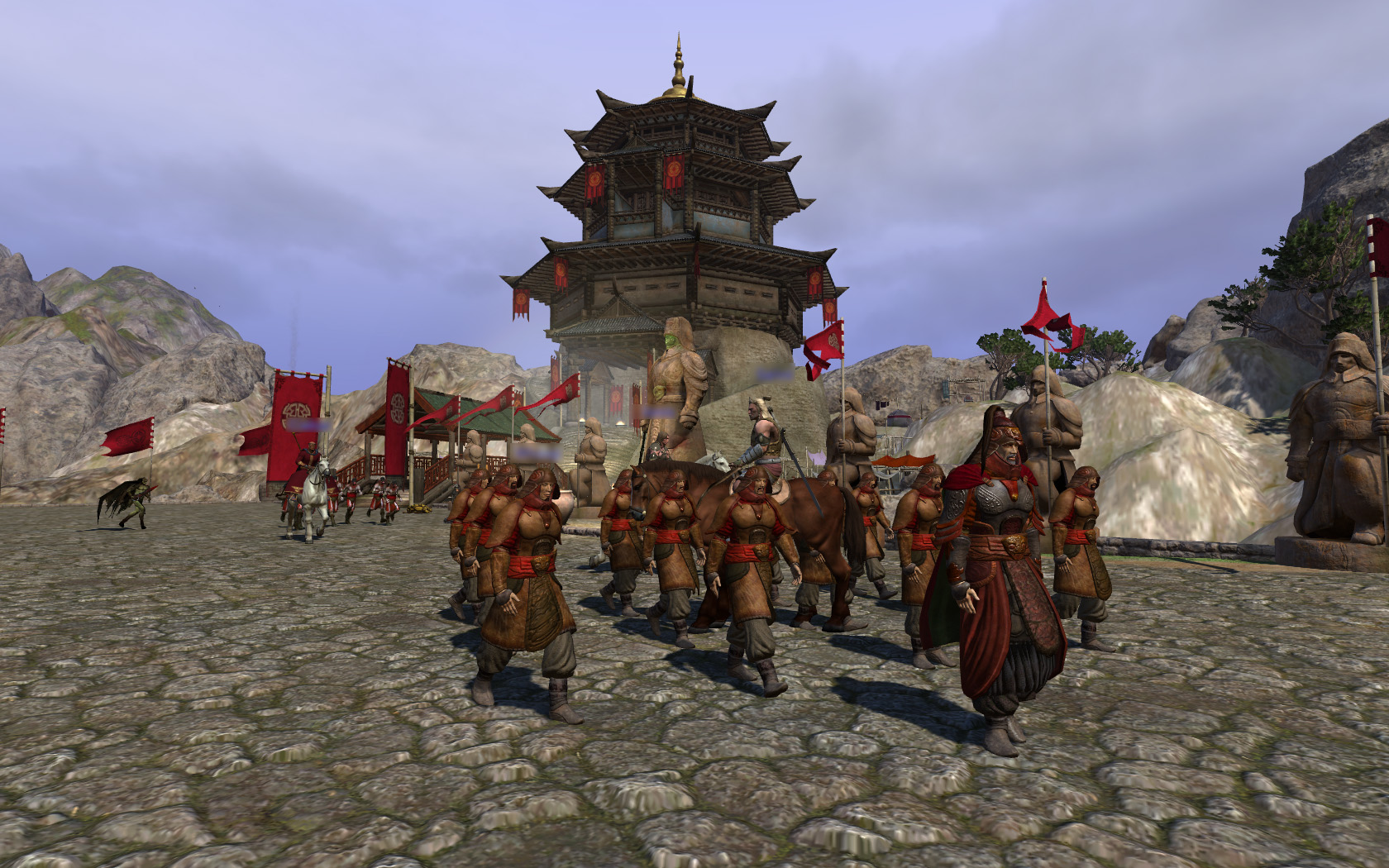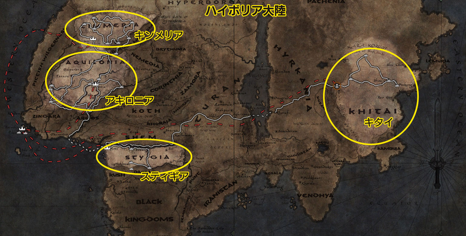 この拡張パックで最も注目されるのが,新ゾーンの「キタイ」(Khitai)と「キタイ人」(Khitan)の追加である。キタイはハイボリア大陸の最東端に位置する国家で,キタイ人の風貌はまったくのアジア風。中国の寺院や,モンゴルの移動用住居パオ(包)のような建物が並び,キタイ人NPCに話しかけると,お辞儀をしたり,拳を手のひらで包み込むような挨拶をしてくれる。中国の弦楽器,二胡の調べを思わせるBGMが使われるなど,古代中国やモンゴル帝国を思わせる世界になっており,同じ東洋ながら日本的な要素はまったく見られないのが,ちょっと残念。