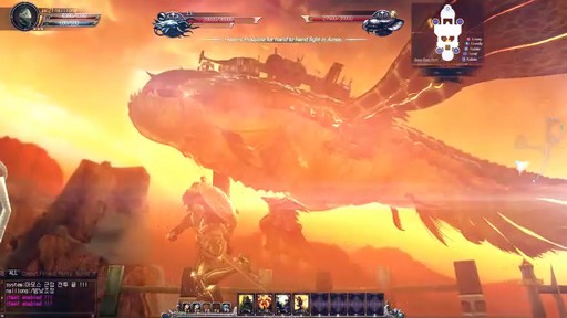 今回発表されたプレイムービーにはさまざまな要素が確認できるのだが,最も目立っているのは同ゲームのウリとなる空中戦闘シーンだろう。空を飛ぶ巨大な魚のような空中モンスターを空中戦艦に仕立て,その上で両陣営がRvRを行うという大規模戦闘コンテンツは,映画「Pirates of the Caribbean」の一場面を髣髴とさせるものがある。超大型モンスターを操縦して,艦砲射撃,バリスタを通した接岸(Approaching)PK戦闘など,ダイナミックな演出が見られる。通常戦闘部分を見ても,派手な血しぶきやヒット時のノックバックといったリアルな打撃感を確認することができる。
