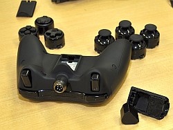 はい。アナログスティックとD-Pad,3つの“方向キー”すべてが取り外し可能で,好きな形状のものに換装できます。アナログスティック(のコンポーネント)も,配置だけでなくプレイ感覚を揃えられるよう,PlayStationスタイルのものと,Xbox 360スタイルのものも用意しています。背面部に錘(おもり)を入れて,重さを変更することも可能です。