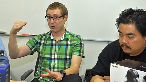 質問に答えてくれたのは,Mad Catz InteractiveのグループプロダクトマネージャーであるChris Carroll(クリス・キャロル)氏と,米Mad Catz プロダクトマネージャーのMark Julio(マーク・フリオ)氏。また日本法人であるマッドキャッツの松浦武敏代表取締役社長にも同席してもらっており,氏には日本法人の今後についても話を聞いている。
