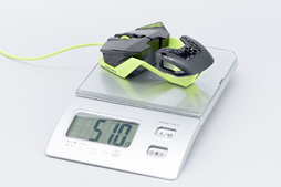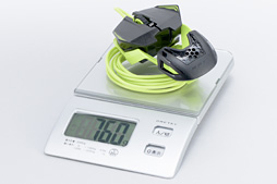 実測重量を計測したところ。ケーブルを重量計からどかした状態は,ケーブルのテンションの影響を受けるので,あくまでも参考値となるが,それでも十分に軽いことは確認できよう