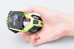 Mad Catzは,今後,異なるセンサーユニットを搭載するメインボタンモジュールや,カラーバリエーションを展開予定と予告しつつ,公開予定のモデリングデータをエンドユーザーが自らカスタマイズし,3Dプリンターで打ち出すことによって,パームレストモジュールの形状を大きく変更できることも,その大きな特徴に挙げている。要するにR.A.T. 1はカスタマイズのベースモデルというわけだが,ベース状態での握りやすさはどうか。試してみた結果をまとめたものが,下の写真とキャプションである。