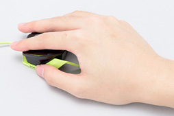 つまみ持ちの例。軽いため,親指と薬指だけでかんたんにつまめる。小指がやや手持ちぶさた――という表現も変だが――になるものの,握っていて,それほど違和感はなかった。念のため,4Gamerきってのつまみ持ち派である御月亜希にも握らせてみたが,「これ,ボタンモジュールだけでもいけそうですね」と言っていたくらいなので,問題ないと思われる