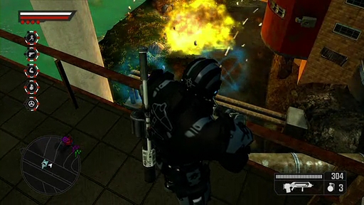 ちなみに,エージェントがどれくらい驚異的な運動能力を持っているのかというと,垂直跳びで10メートルくらいジャンプしつつビルを駆け上ったり,高層ビルの屋上から滑空しつつパトロールしたり,車で襲いかかってくるテロ集団を,車ごと海に放り投げたり……。そこまでパワーアップしないと平和が守れないのかどうかはさておき,プレイヤーが操作するエージェントは真にスーパーマンなのだと理解してほしい。