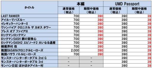 本日より、PlayStation Storeにて、カプコンの人気PSP(PlayStation Portable)タイトル が期間限定でお手頃価格になって登場! PSP向けPlayStation Storeにおける各種コン テンツの販売終了、およびUMD Passportサービス終了を受け、感謝を込め、「サンキュー」 にちなんだ390円(税込)でご提供します。さらにUMD Passportで購入すれば、なんと39 円(税込)!期間限定なので、お見逃しなく!
