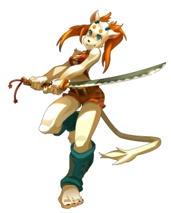 ![]() ギャンブラー戦士「エカフリップ」。ランダムで敵に大ダメージを与えることも相手の傷を癒してしまうこともあり得る,まさに運任せの攻撃がメインのクラスだ |
