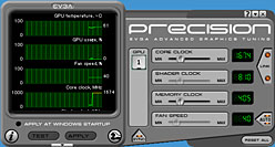 先ほど述べたように,今回は掲載スケジュールを優先した。そのため,きっちりしたオーバークロック検証を行ったわけではないが,まず,EVGAが配布しているGeForce対応のオーバークロックツール「EVGA Precision」を使ってみたところ,バージョン1.91では動作クロックを正常に認識できず。バージョン1.92を入手して再度試してみても,コアクロックを認識できなかった。