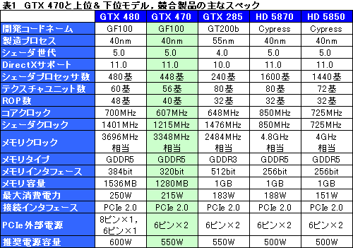 このほか,スペック的に近いGPUと仕様を比較してみたのが表1だ。
