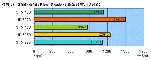 続いてグラフ3〜7は,3DMark06のデフォルト設定となる,解像度1280×1024ドット,標準設定という条件で「Feature Test」を実行した結果だ。