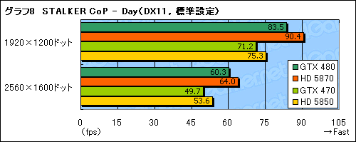 GTX 480比80〜90%程度のスコアを示すGTX 470