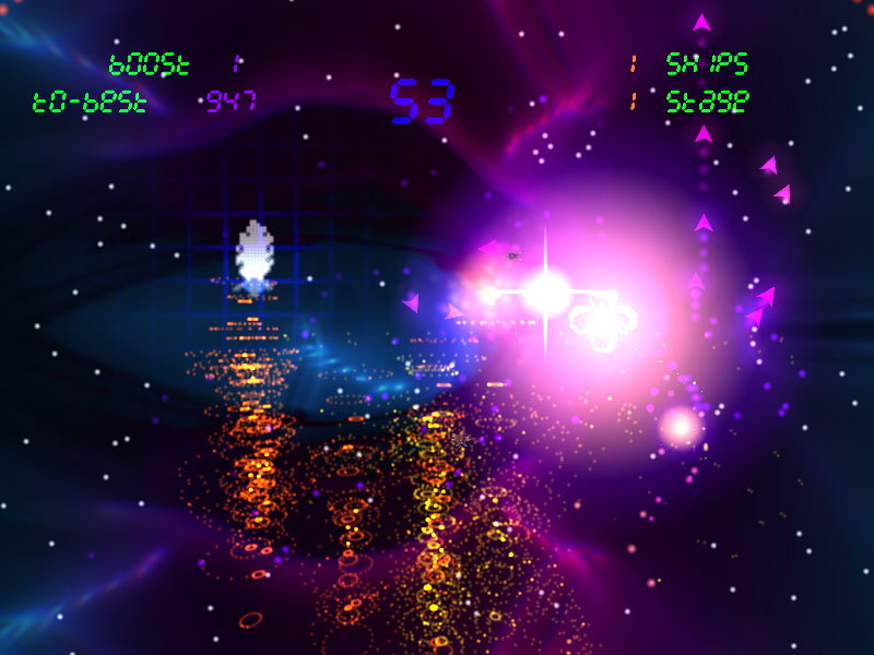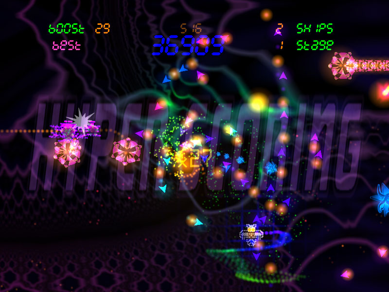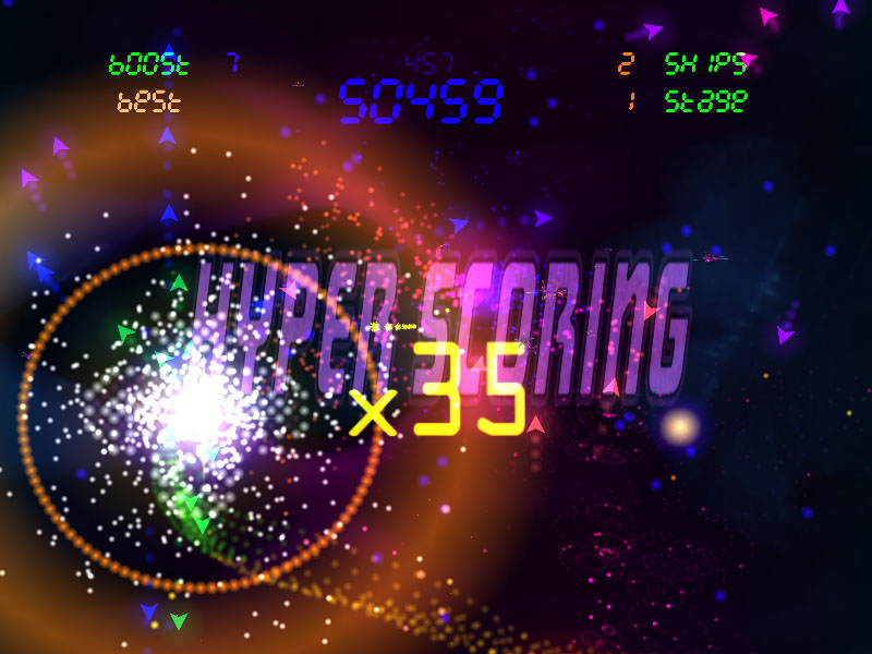 とはいえ,内容は画面が美しくなったこと以外,あまり変わっていないらしく,ひたすら撃って撃って,爆発してキラキラして,ノリのいいハウス系のBGMに身を任せ,さらに撃って撃ってキラキラして,次第に頭がボンヤリしてくるというのが,ある意味,正しいプレイスタイルなのかもしれない。