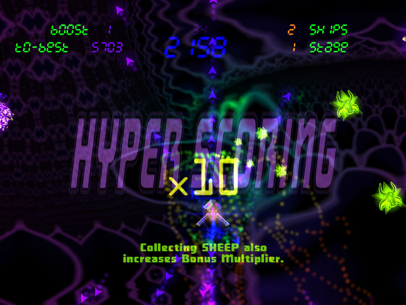 ミンター氏の作品に共通しているのは,その抜群のデザインセンスだ。既存のゲームとは異なる,Llamasoftならではの独特なスタイルを持っており,3Dやリアリティなどどこ吹く風,ドット絵のような自機がビームを撃ちまくり,ハデハデなエフェクトとテンポの良さで「ゲームとしての気持ちよさ」をごく自然に実現しているのだ。