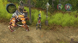 ちなみに,セミオートターゲッティングの精度が気になる人もいるかもしれないが,これはかなり幅広い範囲に補正がかかる。向いている方向を中心にして30度ぐらいの角度は,何も考えなくてもターゲットしてくれる。一部の種族だけ使用できる範囲攻撃に関しては,割り振ったボタンの長押しで,自由に範囲を動かすことができる。マウスで遊んでいる人もスムースに,直感的に遊べるはずだ。