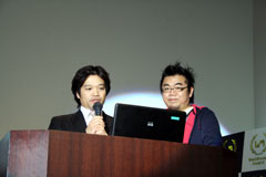 ![]() システムソフト・アルファー 代表取締役社長 宮迫 靖氏(左)と,ハンゲーム ゲームエンタープライズ事業部 マネージャー 里吉洋樹氏(右) |