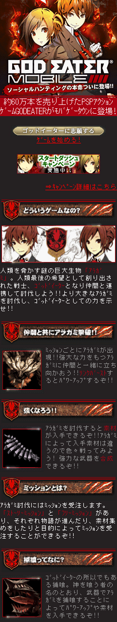 携帯電話向けの「GOD EATER」が登場。「GOD EATER MOBILE」,本日より“モバゲータウン”にて配信開始