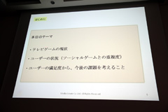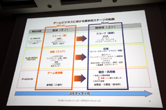 ちなみに細川氏は,ソーシャルゲームの今後の成長要因としては,依然として「コンシューマゲームの退出者の受け皿」としての役割が挙げられるとしつつも,それ以外の層,すなわち10代のコンシューマゲームに慣れ親しんでいる層やまったくの新規顧客といった分野に関しては,やや未知数という見解のようであった。