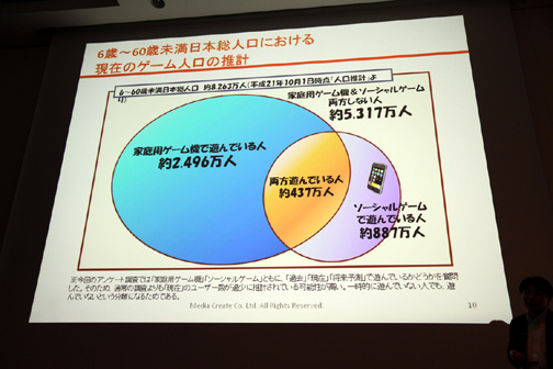 [CEDEC 2010] 家庭用ゲーム機,そしてソーシャルゲームを遊ぶ層の人口分布とは? 日本国内のゲーム人口をマクロ的に調べたメディアクリエイトの講演