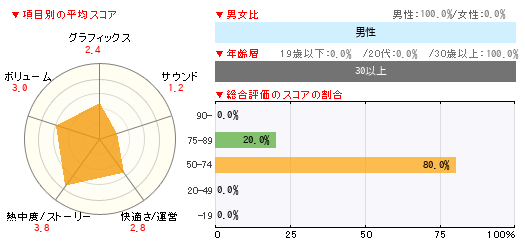 グラフィックス サウンド 快適さ/運営 熱中度/ストーリー ボリューム 3 1 4 4 4