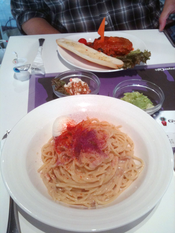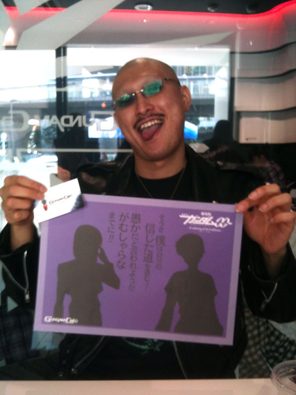 ガンダム気分が盛り上がったところで,話題のガンダムカフェにも行ってみました。「ジャブローコーヒー」と「ティエリア×リボンズ」を注文したのですが,最初はジャブローコーヒーってどこらへんがジャブローなのか分からなかったです。店内で流れているCMを聞くと,アレなんですね。ジャブローで採れたコーヒー豆ってことだったんですね。俺はジャブローといえばズゴッグに腹をブチ抜かれるジムしか思い浮かばなくて,てっきり胃に穴が開くレベルのカフェインでも入っているのかと。とんだ想像をしていました。ゴメンなさい。