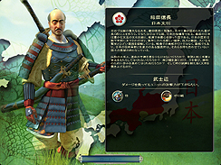 ![]() ・指導者:織田信長 ・文明固有の能力「武士道」:ダメージを負ってもユニットの攻撃力が下がらない ・ユニークユニット:侍,ゼロ戦 |