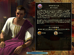![]() ・指導者:アウグストゥス ・文明固有の能力「ローマの栄光」:首都での生産がより効率的にできるようになる ・ユニークユニット:投石機,レギオン |