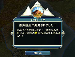 ![]() 自然遺産を発見すると幸福度が向上する。マップには,できるだけ未確認部分を残さないようにしたい |