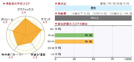 グラフィックス サウンド 快適さ/運営 熱中度/ストーリー ボリューム 4 4 1 3 3 -