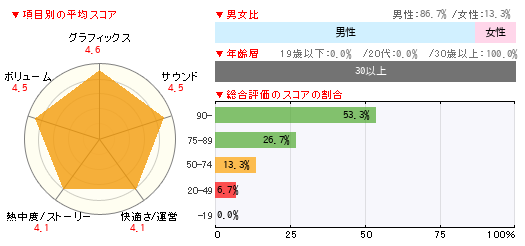 グラフィックス サウンド 快適さ/運営 熱中度/ストーリー ボリューム 4 5 4 4 4 -