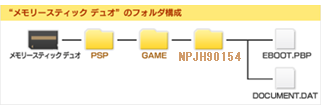ダウンロードしたZIPファイルを展開し,メモリースティックの「PSP」フォルダにある「GAME」フォルダ内に,「NPJH90154」フォルダをコピーすれば,準備は完了だ。