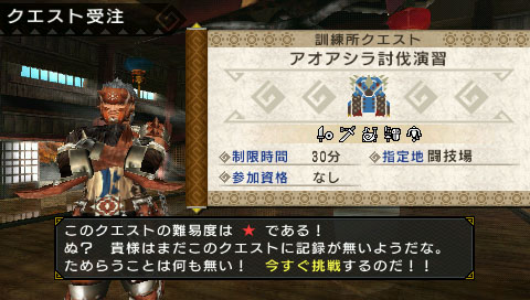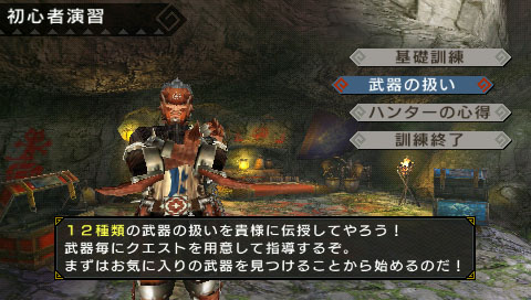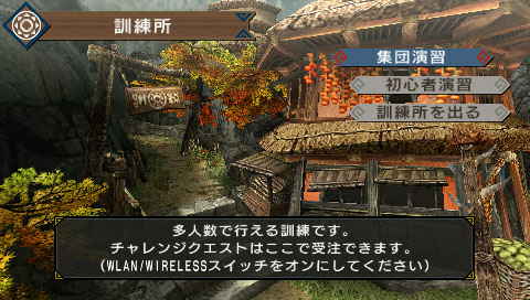 「モンスターハンターポータブル 3rd」の“訓練所”では,基本を学ぶ“初心者演習”や,ハンターの実力を試す“集団演習”を受けられる