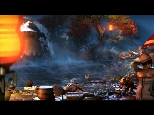 このムービーは,2人のハンターとそれぞれのオトモアイルーが協力して狩猟するという内容が中心で,「2人マルチプレイ時には,各プレイヤーがオトモアイルーを1匹ずつクエストに連れていける」という,本作の新要素の一つにスポットが当てられている。また,本作での拠点となるユクモ村の様子が描かれている点にも注目だ。