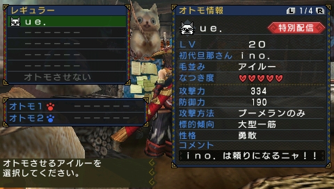 • 画像ギャラリー No.002 | 「モンスターハンターポータブル 3rd」“オトモアイルー配信企画”第2弾,井上 聡さんのオトモアイルー「ue.」が2月4日13:00より配信