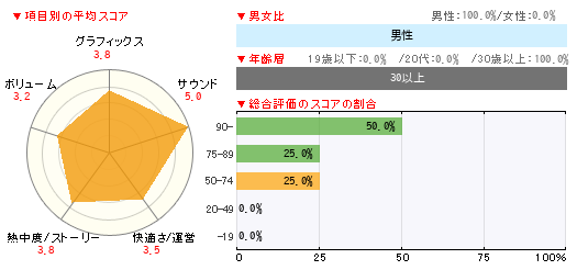 グラフィックス サウンド 快適さ/運営 熱中度/ストーリー ボリューム 4 5 3 4 2 -