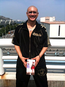 著者近影。文化放送のブースにて「杉田智和のアニゲラ!ディドゥーーン」グッズ第2弾,「ディドゥーーンティッシュ」略して“ディッシュ”が販売されていました。ボックスに番組のマスコットキャラクターである“AGRS”やディドゥーーンメンバーのイラストが描かれています。SP田中もいますよ。美化120%で