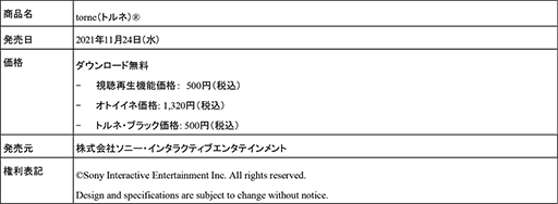 ■2021年11月24日(水)PlayStation 5用「torne(トルネ)」 配信予定