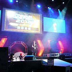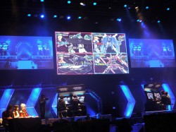![]() ステージ上のスクリーンにはプレイヤー4人それぞれの画面が同時に映し出される。各プレイヤーの卓越した技術は,観戦していたPS3版プレイヤーにとっても参考になったことだろう |