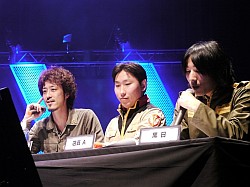 ![]() 大会の盛り上がりを支えた実況,解説陣(左から馬場プロデューサー,店員A氏,黒日氏)。的確な状況解説と熱い実況で,大会の熱狂をさらに加速させてくれた |