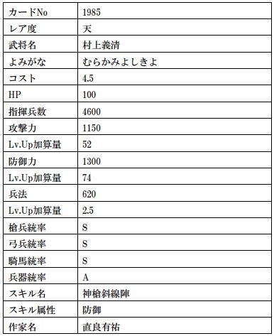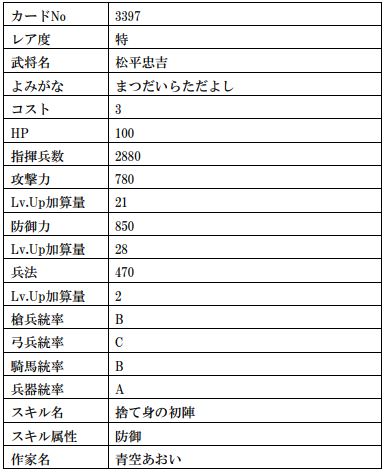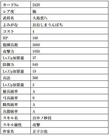 「戦国IXA」,「大島雲八」や「芝辻清右衛門」など9枚の武将カードが新登場