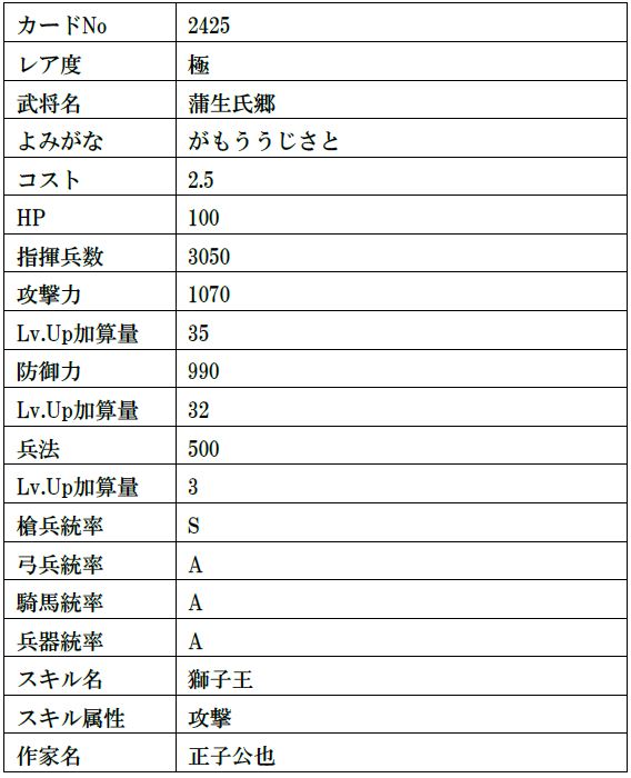 「戦国IXA」,正子公也氏が描く「蒲生氏郷」をはじめ9枚の武将カードを実装