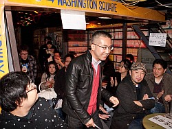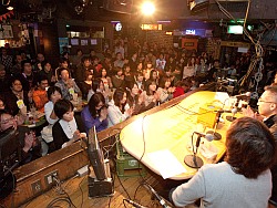 ![]() 歓声とともに迎えられた亙氏。意外に(?)多かった女性客は全員第2部の岡本さん目当てなのかと思いきや,ちゃんとグッズを持参している方まで |