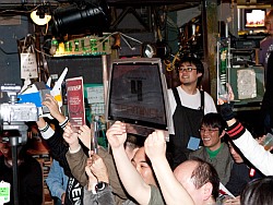 ![]() 話題を振りまきつつも,驚異的な速度でビールジョッキを空けていく亙氏。都合7杯は飲んだようで,のんべで知られる氏も,イベント終盤では結構ふらふらに |