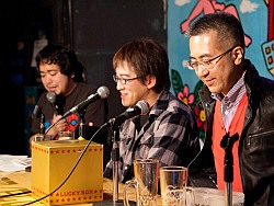 イベントの開始と共に,まず壇上に登場したのは,本イベントの進行を務める,DJ急行氏と本誌編集者TeTの2名。“Mr.プラスワン”ことDJ急行氏の軽妙なトークで場が暖まった後,満を持して亙氏と村山氏が登場すると,会場は大きな歓声に包まれた。