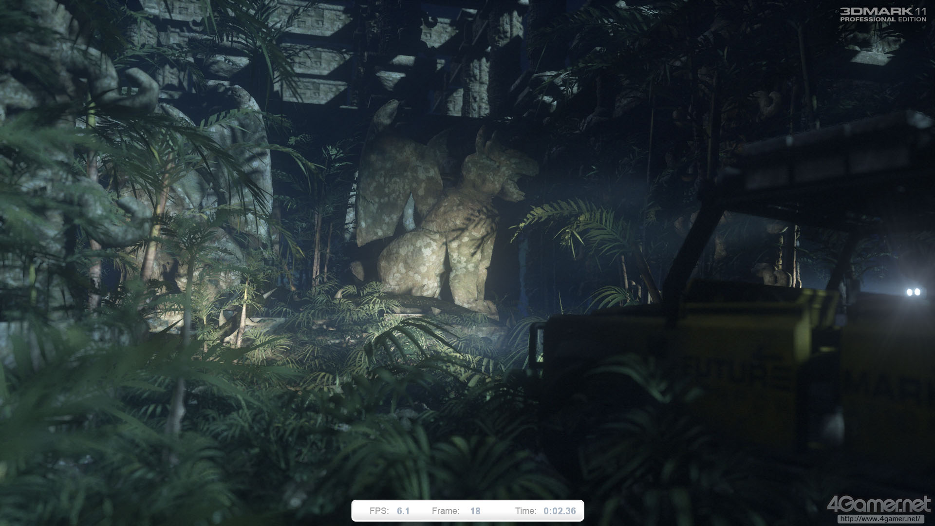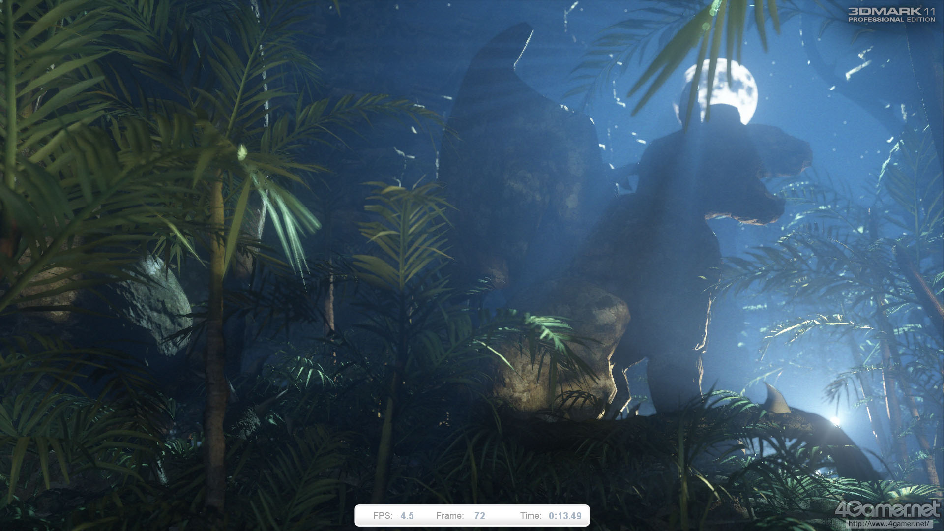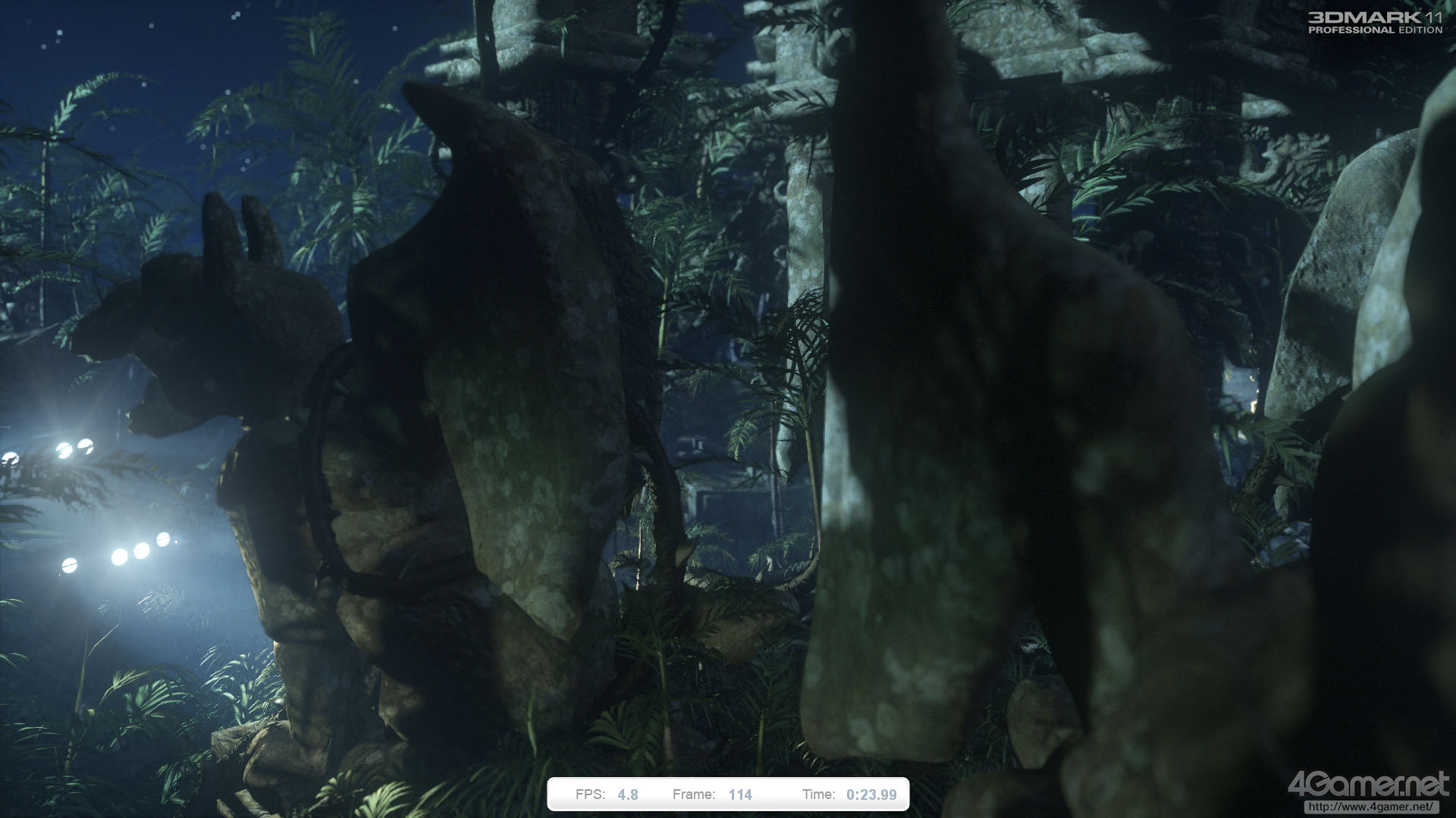 “ジャングル・パート2”的なテストシークエンスで,Graphics Test 3とほぼ同一のセットだが,ライティングシチュエーションは夜になっている。カメラの移動コースも違うため,一見すると別のシーンにも思えるくらいだ。