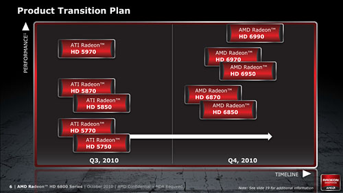 もう1つのATI Radeon HD 5800シリーズ構成製品となるCaymanと,Cayman×2構成となる「Antilles」(アンティレス,開発コードネーム)は「Radeon HD 6900」の名が与えられる予定だが,それを踏まえたAMDのGPU上位製品移行計画をまとめたものが下のスライドだ。