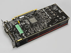基板のサイズは約241mm(※突起部含まず)で,HD 5850のリファレンスデザインとほぼ同じだが,そのGPUクーラーが基板から若干はみ出しているため,カード長としては6mmほど長い同247mmとなる。